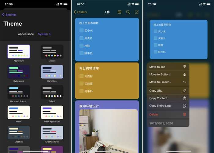 除了便签之外,移动端的 SideNote 中可以通过键盘上的快捷键来创建简单的待办事项、上传图像等操作。创建的一个个便签内容也可以通过文件夹的形式分类,当然相比 Mac 版本依旧有不少的限制,比如不支持导入文本文件,也无法导出;另一个限制就是无法进行文件管理,比如对便签文件夹排序、快速切换到最近的文件夹或者将便签移动到新的文件夹上。