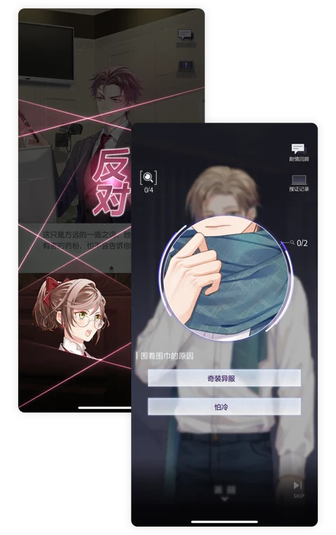 搜集资料的过程中,你会邂逅背景、性格各异的 4 位男主角。随着剧情的深入,你们之间的关系也会愈加亲密。增加好感度之后,还能解锁专属个人支线剧情,你将从中了解到他们不为人知的另一面。
